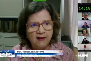 Em discurso na Reunião Plenária desta quinta (8), a deputada Teresa Leitão (PT) abordou a situação dos servidores estaduais que estão sem condições de pagar dívidas contraídas com cartão de crédito com mínimo consignável. Ela propôs à Secretaria Estadual de Administração (SAD) e à Procuradoria Geral do Estado (PGE) que ajudem a negociar a questão, que já gerou quase mil ações judiciais. “Por mais de 49 meses, descontos foram feitos de forma ilegal”, sustentou.