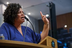 MANIFESTAÇÃO – Dani Portela saudou os protestos contra a aprovação da “PEC da Bandidagem” e a anistia. Foto: Jarbas Araújo