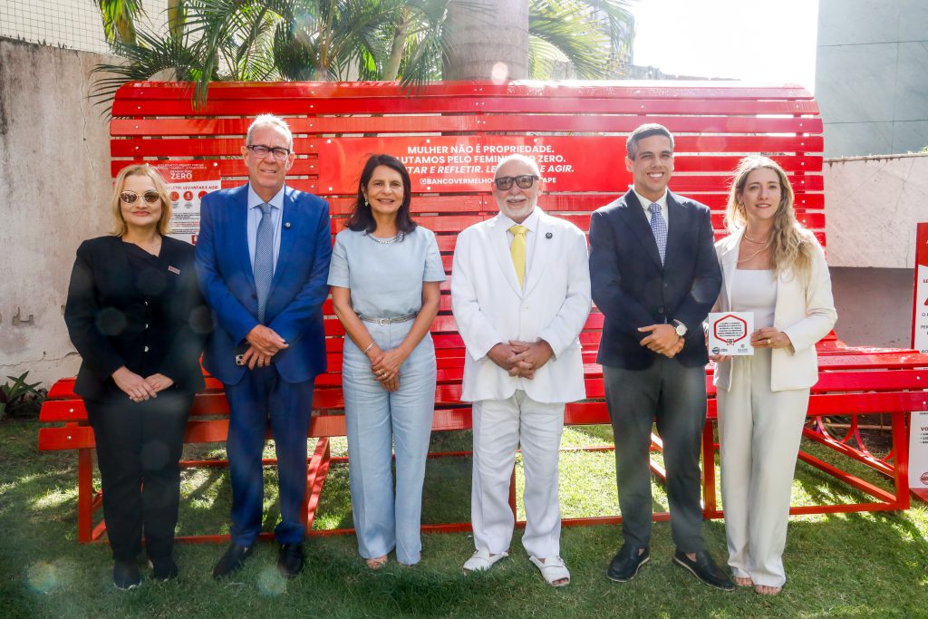 A Alepe inaugurou, nesta segunda (29), um banco gigante na cor vermelha – símbolo nacional de mobilização contra a violência doméstica e o feminicídio – em frente ao palácio Miguel Arraes, sede do Legislativo estadual. O ato marcou o início da primeira parceria entre um parlamento estadual e o Instituto Banco Vermelho (IBV), idealizador da causa.