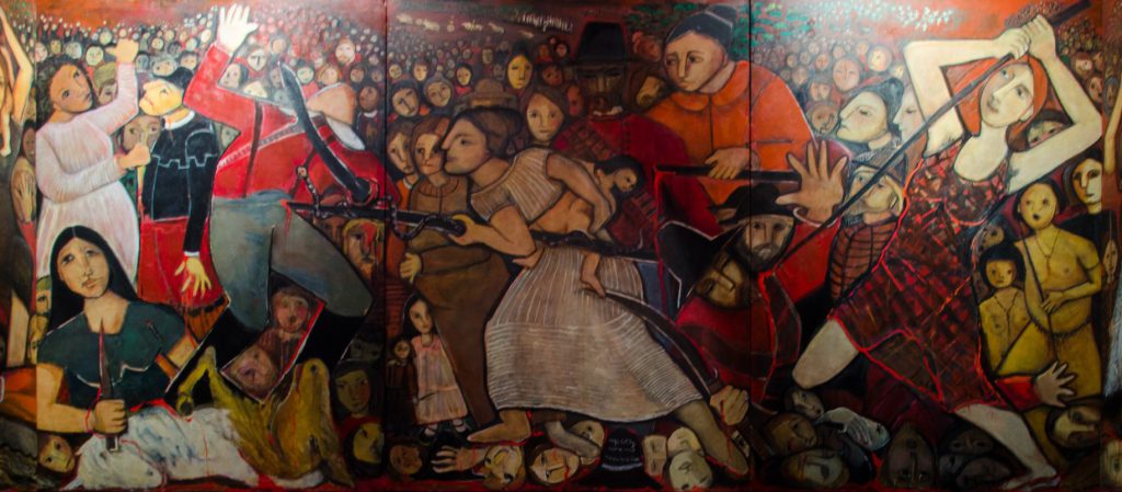 RESISTÊNCIA – Painel de Tereza Costa Rêgo reconstitui o episódio histórico. Foto: Jan Ribeiro/Secult-PE